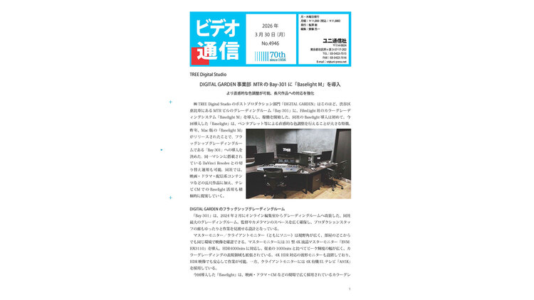 【メディア掲載】3月30日(月)のビデオ通信に、当社が導入した「Baselight」の記事が掲載されました!