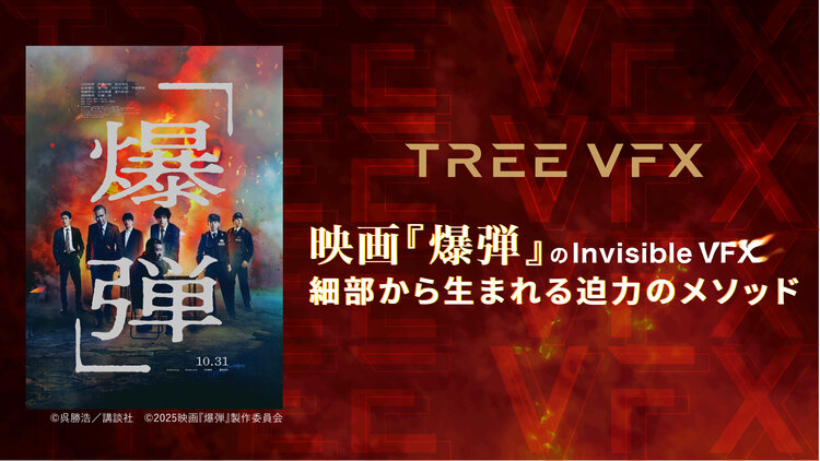当社のTREE VFXチームが制作に携わった映画『爆弾』が2025年10月31日(金)に公開されます。日本最大級のミステリーランキング「このミステリーがすごい! 2023年版」(宝島社)「ミステリが読みたい 2023年版」(ハヤカワミステリマガジン2023年1月号)で1位を獲得したベストセラー小説を...