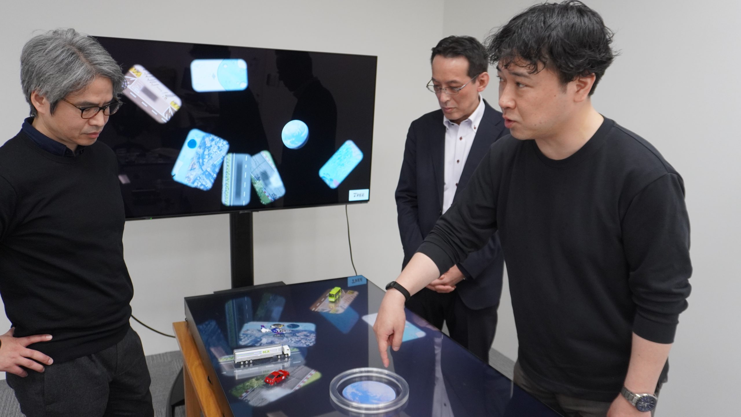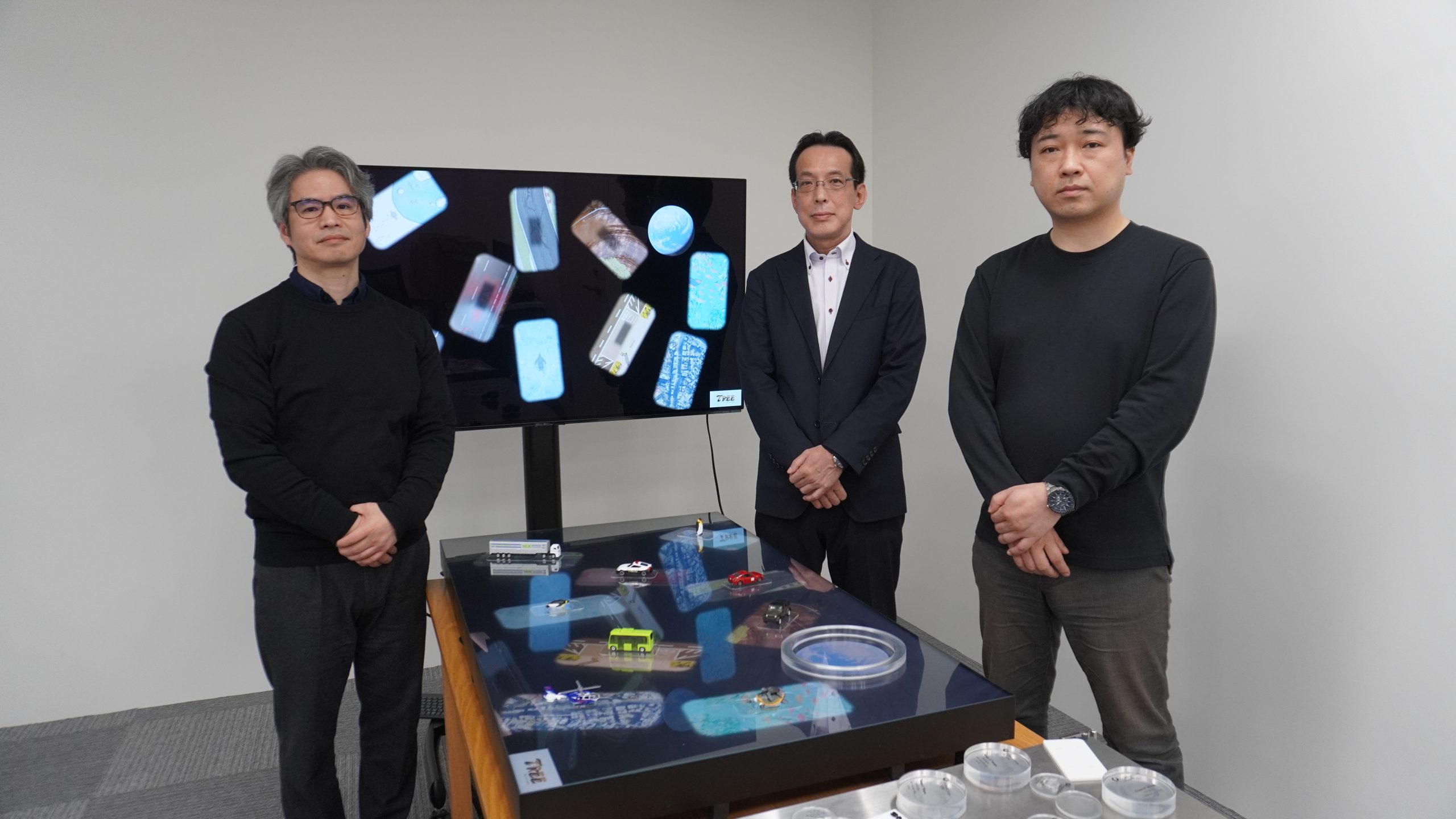 今回は、本製品の国内販売代理店を務めるヒビノグラフィックス株式会社で営業を担う中山 真さん、技術を担当されている橘内 伸太郎さんと、数々のインタラクティブコンテンツを手掛けてきたTREE Digital Studioの取締役・高田 稔則さんに取材し、最新のタッチパネル技術と、AIベースのオブジェクト認識「Scape X」がもたらす新たな体験価値、そして今後の展望について詳しく話を伺いました。